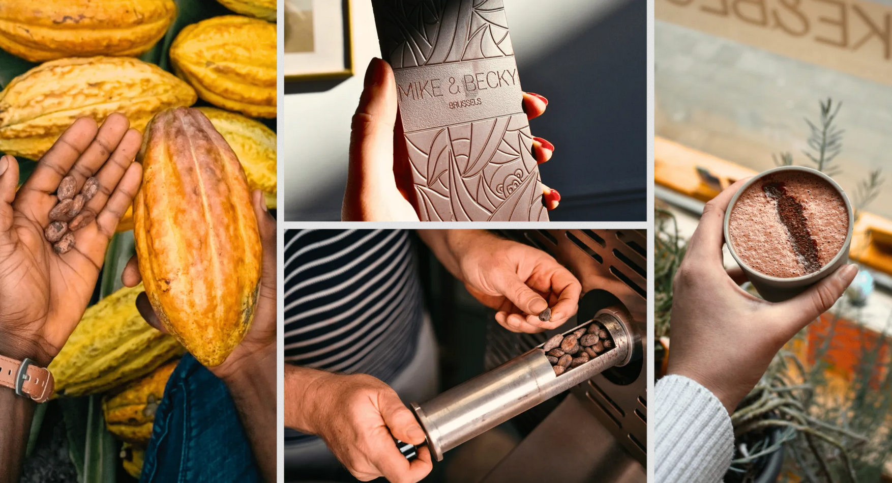 Mike & Becky font du bean-to-bar à Bruxelles : ils torréfient, broient et conchent eux-mêmes des fèves sourcées de façon transparente, avec mention d’origine claire sur chaque recette. Ici, le cacao La Gina (variété Hispaniola) apporte structure et notes chocolatées franches, que le chai relève sans masquer.