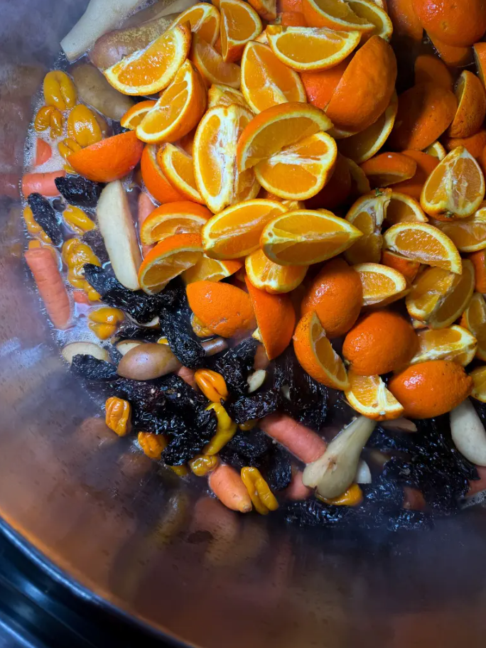 Orange* · Poire* · Chocolat noir 85% (Pérou)* · Carotte* · Vinaigre de cidre* · Piment Habanero** · Piment Chipotle (MX) · Cassonade brune** · Sel de mer